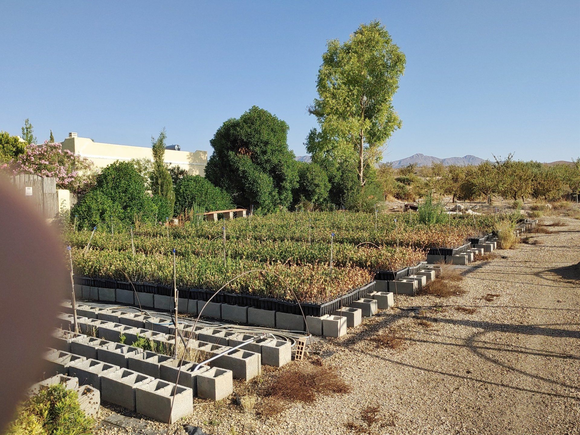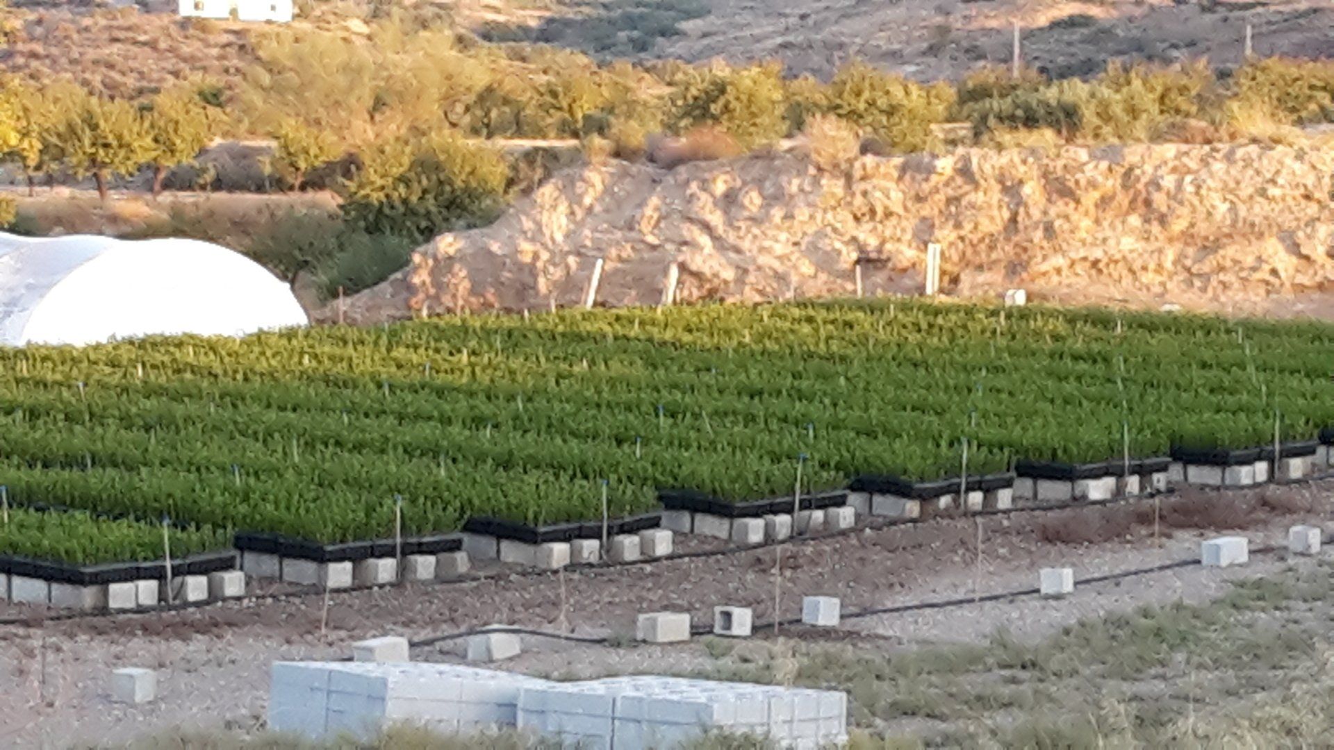 In Reih und Glied stehen sie da, die jungen Jojoba Pflanzen, frisch gepflanzt